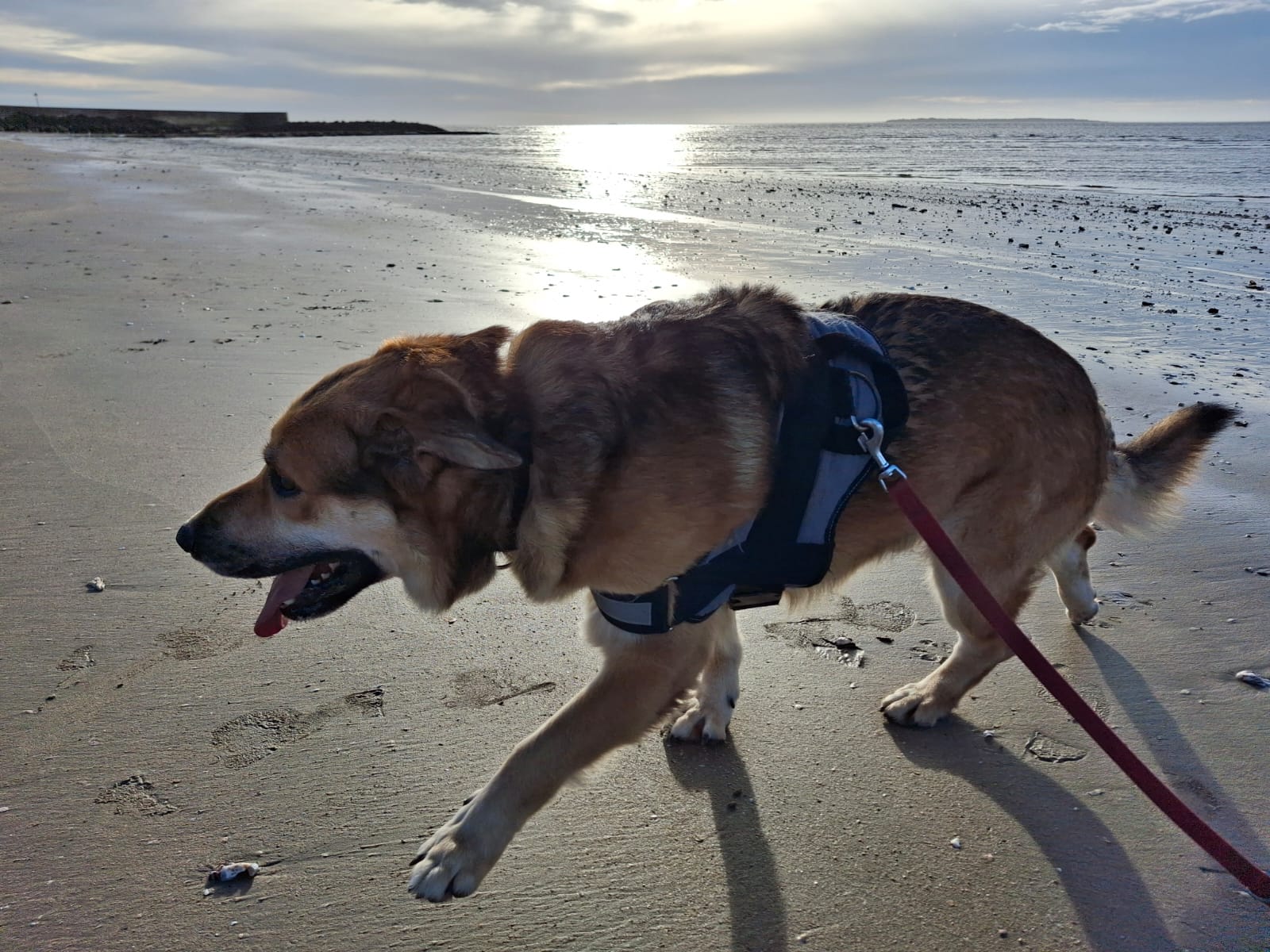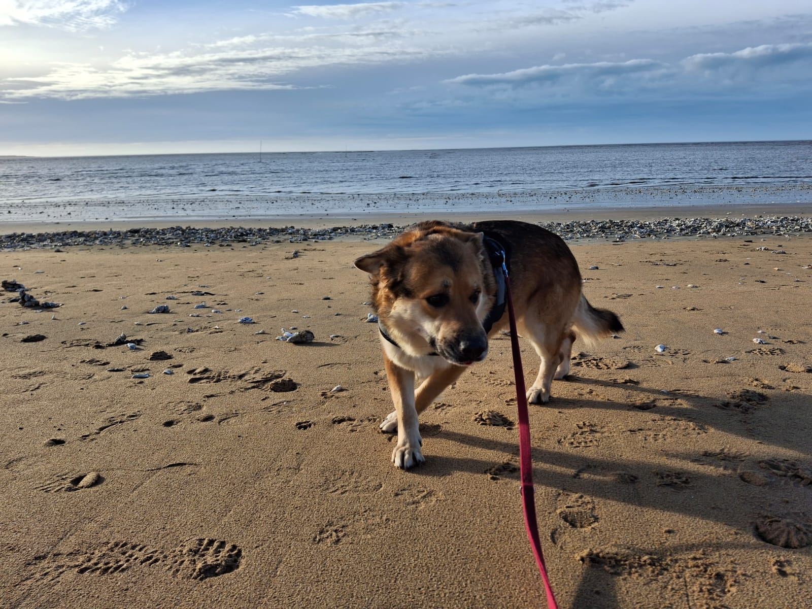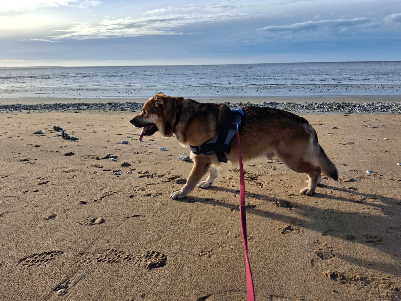 Tommy est un chien stressé et peureux, encore en phase de découverte de son environnement. Il commence tout juste à apprendre les promenades en laisse, ce qui explique qu’il tire encore un peu. Il est également peu à l’aise lors de la mise du collier et du harnais, un point qui devra être travaillé en douceur.